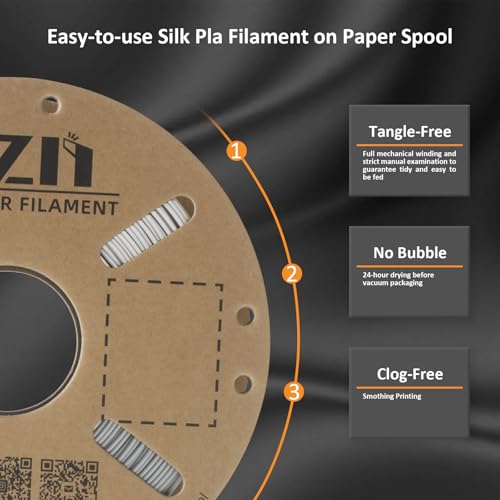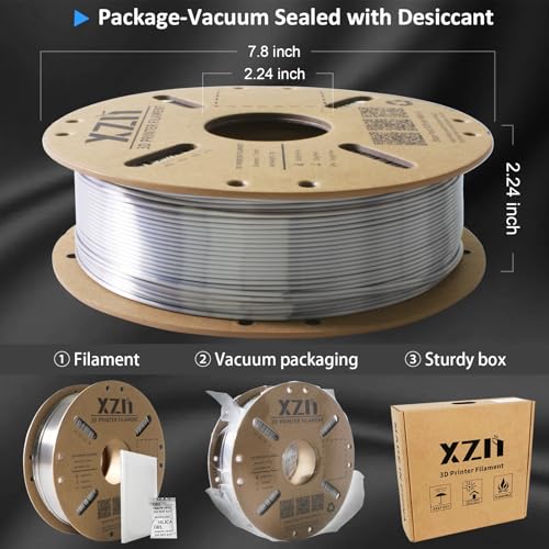 XZN PLA Filament 1.75mm Seide PLA 3D Drucker Filament,Maßgenauigkeit +/- 0,03 mm, Silk PLA 1KG Spule,Silk Silver