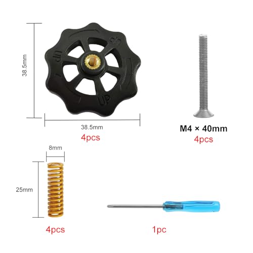 YIXISI 4 Stück 3D Drucker Verbesserte Hand Twist Leveling Mutter, it 4 Stück Heißbettfeder und 4 Stück Schrauben und 1 Stück Schraubendreher, für Creality 3D-Drucker CR-10 CR-10s Ender 3 Ender 3 Pro