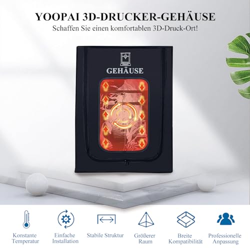 Schütze deinen 3D-Drucker mit dem YOOPAI Gehäuse! Es sorgt für konstante Temperatur, ist staub- und feuerfest, minimiert Geräusche und ist kompatibel mit vielen Modellen. Genieße hochwertige Drucke ohne Ablenkungen!
