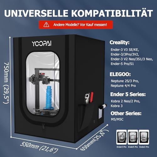 YOOPAI 3D Drucker Gehäuse für Creality Ender 3/ Ender 3 V2/ Ender 3 Pro/ Anycubic/ Elegoo 3D Drucker und So Weiter, Feuerfest & Staubdicht Zelt Konstante Temperatur 3D Drucker Abdeckung 550*650*750 mm