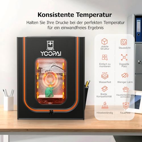 Das YOOPAI 3D Drucker Gehäuse ist eine hervorragende Investition für alle, die Wert auf Druckqualität, Sicherheit und Benutzerfreundlichkeit legen. Die zahlreichen Funktionen sind sorgfältig durchdacht und tragen zu einem angenehmen Druckerlebnis bei. Trotz seiner minimalen Platzanforderungen bietet es ein umfassendes Paket, das sich sowohl für Anfänger als auch für erfahrene Benutzer eignet.