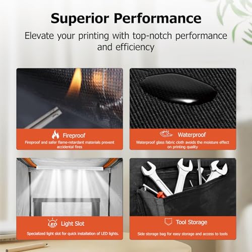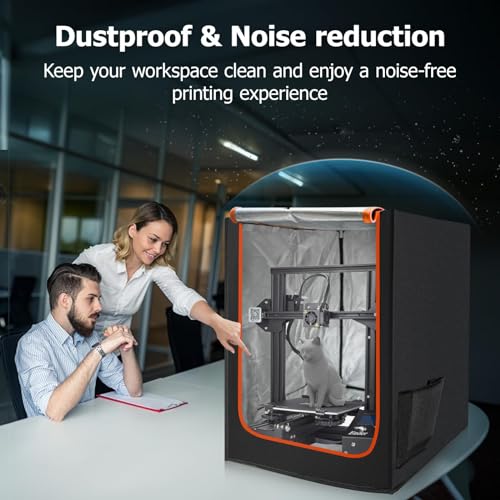 Features | ✅【Verbesserte Beleuchtung für Ihren Druckbereich】Verbessern Sie die Sichtbarkeit Ihres Arbeitsplatzes mit unserer innovativen eingebauten LED-Lichtleiste. Sie beleuchtet Ihren Druckprozess und ermöglicht es Ihnen, ihn effektiver zu überwachen. Durch die schnelle Erkennung von potenziellen Problemen wie Filamentstaus, Schichthaftungsproblemen oder Fehlausrichtungen können Sie diese auch bei schlechten Lichtverhältnissen sofort beheben., ✅ 【Verbessern Sie die Druckqualität mit konstanter Temperatur】Bietet eine stabile und kontrollierte Umgebung für Ihre Drucke. Das Aufrechterhalten einer konstanten Temperatur während des Druckens gewährleistet hochwertige Drucke und verhindert Druckfehler sowie Materialverschwendung. Eine konstante Temperatur verringert das Risiko von Verstopfungen und Staus und erhöht Ihre Druckgeschwindigkeit und Effizienz., ✅ 【Staub- und feuerfest, sicher in der Anwendung】Schützen Sie Ihren 3D-Drucker und minimieren Sie das Risiko von Unfällen durch feuerfeste Materialien und eine robuste Struktur. Verhindern Sie, dass Staubpartikel eindringen und die Druckqualität beeinträchtigen, um stabil und perfekt zu drucken. Verhindern Sie effektiv versehentliche Berührungen von Kindern oder Haustieren., ✅【Geräuschisolierung und leises Erschaffen】Ein geschlossenes Gehäuse für 3D-Drucker mit allen sechs Seiten blockiert effektiv die Übertragung von Druckgeräuschen. Reduzieren Sie Geräusche effektiv und genießen Sie den geräuschlosen Druckvorgang., ✅ 【Schnelle Installation und langfristige Nutzung】Einfache Installation in 5 Minuten, schneller Start und problemlose Demontage zum Umzug oder Austausch. Die robuste Bauweise gewährleistet Stabilität während des Betriebs, minimiert Vibrationen, die die Druckgenauigkeit beeinträchtigen könnten, und kann Ihre langfristige Nutzung unterstützen, ohne ein Wegwerfprodukt zu sein., ✅【Wide Compatibility】Support printer size (include spool holder height) is smaller than 28.7×25.6×21.6". Please measure your printer height before ordering. Compatible with Anycubic Kobra 2/Kobra Neo/Anycubic Mega Pro, Creality Ender 3 V2/3V2 Neo/Ender 3S1/3S1 Pro/Ender 3Pro/Ender 3/3 Neo/Ender 3Max/Neo/Ender 6SE/Ender 5/ 5Pro/5S1, ELEGOO Naptune 3D Printer. Wenn Sie sich nicht sicher sind, ob Ihr 3D-Drucker geeignet ist, können Sie uns gerne fragen. |