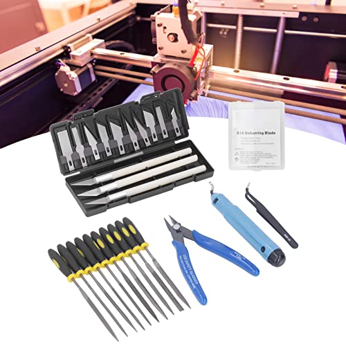 3D Drucker Zubehör, 36 Stück 3D-Drucker-Werkzeugsatz Tool Kit, Beinhaltet Entgraten Trimmen, Dateimodell, Schnitzmesser, Pinzette, Zangen zum Entfernen, Reinigen, Fertigstellen von 3D Druckmodellen