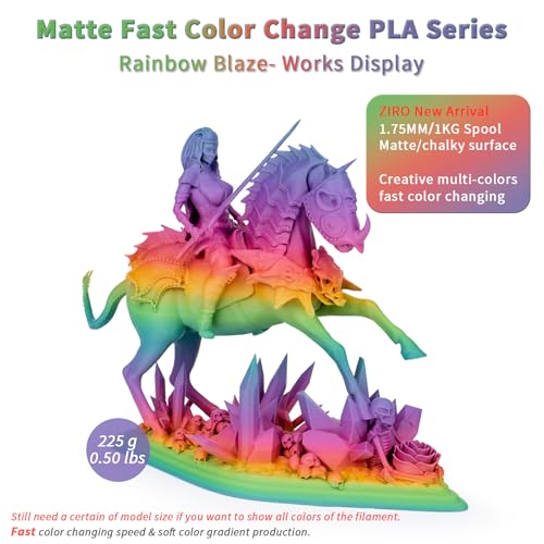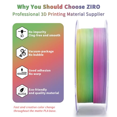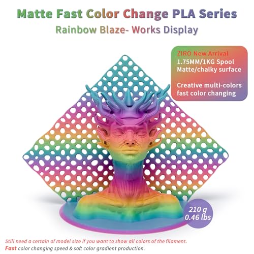 ZIRO 3D Drucker Filament PLA, Schnelle Farbe Wechselnde Filament, Farbe Geändert durch Länge PLA, Fit die Meisten FDM 3D Drucker, Matte Finish 1KG/2.2lbs Spule, Regenbogen Blaze