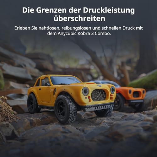 Mit einer maximalen Druckgeschwindigkeit von 600 mm/s ist der Anycubic Kobra 3 Combo eines der schnellsten Modelle auf dem Markt. Dies ermöglicht es, große Druckprojekte in wesentlich kürzerer Zeit abzuschließen, als es mit anderen Druckern der Fall wäre.