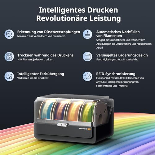 - Mehrfarbiger Druck in bis zu 8 Farben mit dem Anycubic Color Engine Hub.