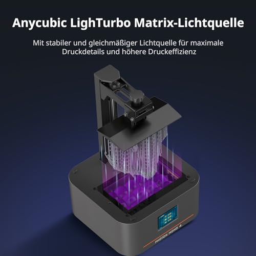 Mit einer Druckgeschwindigkeit von bis zu 70 mm/h ist der ANYCUBIC Photon Mono 4 einer der schnelleren 3D-Drucker auf dem Markt. Diese Geschwindigkeit kombiniert mit der kurzen Belichtungszeit pro Schicht macht das Druckverfahren sehr effizient.