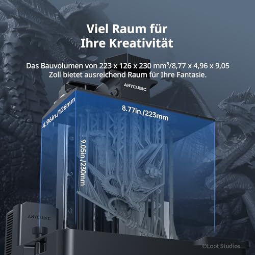 - Ermöglicht Druckgrößen von bis zu 223 x 126 x 230 mm