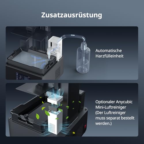 Zusätzlich sorgt die Funktion der automatischen Harzfüllung dafür, dass der Druckprozess nie unterbrochen wird, solange genügend Material vorhanden ist. Das spart nicht nur Zeit, sondern optimiert auch den gesamten Workflow und reduziert die Notwendigkeit für manuelles Eingreifen während des Druckens.