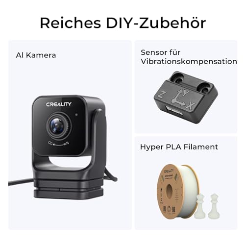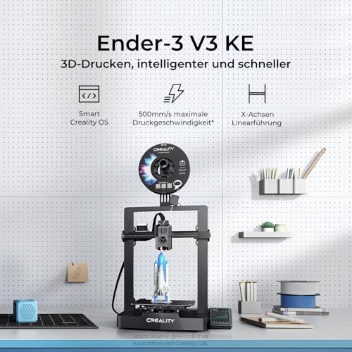 Schnelle und einfache Montage: Der Creality Ender 3 V3 KE ist bereits zu 90 % vormontiert und benötigt nur wenige Schrauben für die abschließende Einrichtung. Mit CR Touch Auto-Bed-Leveling und präziser Strain-Gauge-Kalibrierung ist er besonders anfängerfreundlich und für neue Anwender unkompliziert in der Handhabung., Benutzerfreundliche Schnittstelle: Ausgestattet mit einem 4,3-Zoll-Farb-Touchscreen, integrierter WLAN-Funktion sowie Unterstützung für LAN-, Cloud- und USB-Druck bietet der Creality 3D Drucker einfache Steuerung und Flexibilität. Künstler, Pädagogen und DIY-Enthusiasten können bequem von überall über ihren PC oder die Creality Cloud-App drucken., Hochgeschwindigkeits-Druck für effiziente Ergebnisse: Der Ender 3 Serie 3D priner erreicht beeindruckende Druckgeschwindigkeiten mit einer maximalen Rate von 500 mm/s und einer Beschleunigung von bis zu 8000 mm/s². Die Druckgröße von 220 x 220 x 240 mm eignet sich perfekt für kleine bis mittelgroße Projekte und spart Zeit, ohne die Druckqualität zu beeinträchtigen., Stabile Druckqualität durch Doppel-Kühlung: Doppelte Lüfter auf beiden Seiten sorgen für schnelle und gleichmäßige Kühlung, während intelligente Algorithmen wie Input Shaping und Motion Advance Druckfehler minimieren und präzise, glatte Oberflächen gewährleisten., Umfassende Filamentkompatibilität: Der Direct-Drive-Sprite-Extruder dieses Creality Ender 3D Drucker druckt zuverlässig mit Filamenten wie Hyper PLA, PETG, ABS, TPU (95A) und ASA. Diese Kompatibilität eignet ihn ideal für verschiedenste Projekte – von detailreichen Modellen über Lehrmittel bis hin zu funktionalen Prototypen., Creality Cloud Community: Die Creality Cloud bietet eine integrierte Plattform für den Handel mit 3D-Modellen, cloudbasiertes Slicing, Echtzeit-Überwachung des Druckvorgangs, Fernsteuerung des Druckers und mehr. Über alle Geräte hinweg zugänglich, ermöglicht sie eine nahtlose Nutzung sowohl am Desktop als auch mobil – für maximale Flexibilität., Offizieller Creality-Support: Unser Team aus erfahrenen Ingenieuren steht Ihnen für umfassenden After-Sales-Support zur Verfügung und bietet einen 24/7-Kundenservice mit 18-monatiger technischer Unterstützung. Kontaktieren Sie uns für professionelle Hilfe direkt über die Funktion „Frage stellen“.