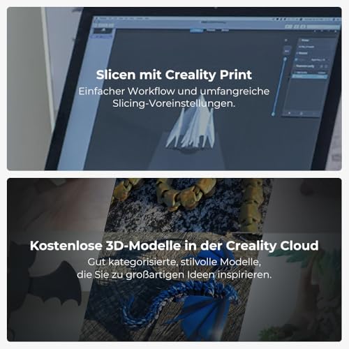 | Features | Schnelle Montage & Benutzerfreundlichkeit– Der Creality Ender 3 V3 SE 3D-Drucker ist zu 90 % vormontiert, wodurch der Aufbau schnell und unkompliziert ist. Mit nur drei einfachen Schritten ist der 3D Drucker in 20 Minuten einsatzbereit – perfekt für Anfänger, DIY-Projekte., CR Touch & Auto-Leveling– Dank des CR Touch Sensors und einem speziellen Z-Offset-Sensor erfolgt die automatische Nivellierung völlig freihändig. Dies erleichtert die Bedienung und sorgt für genaue 3D Druck-Ergebnisse ohne manuelles Eingreifen., Sprite Direct Drive Extruder– Ausgestattet mit dem verbesserten "Sprite" Vollmetall-Dual-Gear-Direct-Extruder, gewährleistet der 3D-Drucker reibungsloses Ein- und Ausführen von Filamenten wie PLA, TPU und PETG ohne Verrutschen., Stabile Dual Z-Achse– Der Ender 3 V3 SE verfügt über zwei präzise Z-Achsen-Gewindespindeln, die Wobbeln minimieren und Druckabweichungen verhindern. Die Y-Achse, ausgestattet mit zwei 8 mm Linearschienen, sorgt für zusätzliche Stabilität und hohe Druckgenauigkeit., Verbessertes Kühlsystem– Mit einer Druckgeschwindigkeit von bis zu 250 mm/s und einer Beschleunigung von 2500 mm/s² liefert der 3d drucker schnelle Druckergebnisse, ohne die Druckqualität zu beeinträchtigen. Das verbesserte Kühlsystem sorgt für gleichmäßige Kühlung und ermöglicht zuverlässige 3D Drucke in kürzerer Zeit., Auto Filament Loading– Der 3D-Drucker Ender 3 V3 SE unterstützt das automatische Filament-Laden und -Entladen, was das Wechseln der Filamente mühelos macht. Einfach auf "Extrude" oder "Retract" tippen, und der Prozess erfolgt nahtlos – ideal für alle, die einen Mini 3D Drucker nutzen., Offizieller Creality Support– Mit einem 12-monatigen After-Sales-Service und einer schnellen Reaktionszeit von 24 Stunden bietet Creality umfassenden Kundenservice für alle technischen Fragen rund um den 3D-Drucker. |