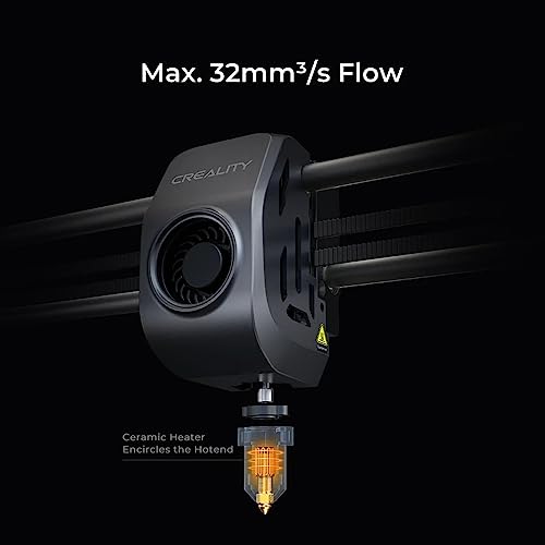【600 mm/s – König der Geschwindigkeit】 Mit einer Druckgeschwindigkeit von 600 mm/s und einer Beschleunigung von 20.000 mm/s² ist der Creality K1 Max 12-mal schneller als herkömmliche FDM-3D-Drucker, was die Effizienz erheblich steigert., 【300 x 300 x 300 mm maximale Kapazität, effiziente Raumnutzung】K1 Max verfügt über ein großes Bauvolumen von 300 x 300 x 300 mm, ideal für schnelles Prototyping oder Designverifizierung. Es bietet außerdem ein hohes Verhältnis von Bauvolumen zu Druckergröße von 25,5 %. Der K1 Max ist der größeneffizienteste FDM-3D-Drucker seiner Klasse., 【KI-LiDAR und KI-Kamera】Der KI-LiDAR mit einer Auflösung von 1 μm scannt die erste Schicht selbstständig. Der Druckvorgang wird angehalten und Sie werden sofort informiert, wenn etwas schief geht. K1 Max verwendet eine KI-Kamera, um Spaghettifehler, Fremdkörper, Schmutz usw. zu überwachen. Sie warnt Sie, wenn ein Fehler auftritt. Es unterstützt auch Echtzeitüberwachung und erstellt Zeitraffer zum Teilen., 【Starrer Rahmen und Kern XY für stabile Qualität】Der Unibody-Rahmen aus druckgegossener Aluminiumlegierung des K1 Max ist CNC-gefräst, um präzise und steif zu sein. Mit dem flinken Kern XY ermöglicht der Creality K1 Max gleichmäßiges Drucken bei hoher Geschwindigkeit., 【Verbessertes Keramik-Hotend und doppelte Kühlung】Neue Keramikheizung, die das gesamte Hotend umgibt. Es erwärmt sich in 40 Sekunden auf 200℃ und schmilzt das Filament sofort. Zusammen mit dem großen Lüfter am Druckkopf und einem 18-W-Zusatzlüfter in der Baukammer härtet das Modell aus, bevor es zu Fäden und Verformungen kommt., 【G-Sensor und verbesserte Z-Achse für feine Modelltexturen】 Ein G-Sensor im Druckkopf misst die Resonanzfrequenzen des Hochgeschwindigkeitsdrucks und stimmt den Drucker automatisch ab, um diese zu mildern. Keine Geisterbilder oder Klingeleffekte mehr auf dem Ausdruck. Und die verbesserte Z-Achse mit genauerer Positionierung reduziert effektiv Z-Banding.
