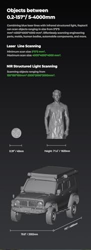 Egal ob du kleine Figuren, komplexe Maschinenbauteile oder sogar den menschlichen Körper scannen möchtest, der Creality RaptorX erfüllt diese Anforderungen spielend. Die Möglichkeit, Objekte von nur 5 mm bis zu 4000 mm zu scannen, macht ihn vielseitig einsetzbar für verschiedene Projekte und Branchen.