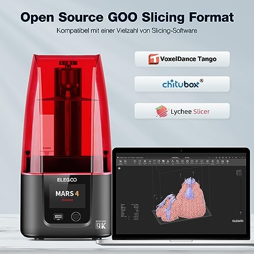 Zusätzlich sind die Open-Source-GOO-Slice-Dateien ein großer Vorteil, da sie eine flexible Anpassung und grenzenlose Kreativität beim Drucken ermöglichen. Somit ist der Mars 4 sowohl für Anfänger als auch für erfahrene Benutzer geeignet.