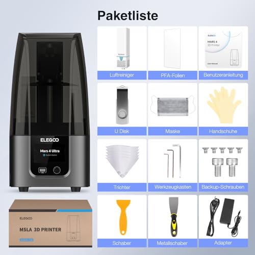 Der ELEGOO Mars 4 Ultra MSLA Resin 3D Drucker ist ein hochentwickeltes Modell, das sich an sowohl Anfänger als auch erfahrene Benutzer richtet. Mit seinen beeindruckenden technischen Spezifikationen verspricht der Drucker eine ebenso hohe Leistung wie Präzision, und das zu einem attraktiven Preis-Leistungs-Verhältnis. Besonders die Wi-Fi-Konnektivität und das benutzerfreundliche Design sind hervorzuheben.