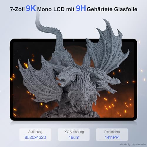 Zusätzlich sorgt das 9H gehärtete Glas über dem LCD für eine verbesserte Haltbarkeit und schützt den Bildschirm vor Kratzern, was die Langlebigkeit des Druckers erhöht. Diese Kombination verbessert nicht nur die Lebensdauer des Produkts, sondern auch die Qualität der Druckergebnisse über einen längeren Zeitraum.