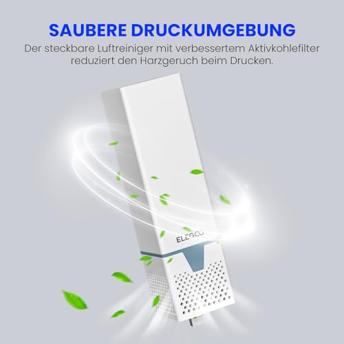Der integrierte Plug-in-Luftreiniger mit einem verbesserten Aktivkohlefilter sorgt dafür, dass störende Harzgerüche während des Druckens effektiv gefiltert werden. Dies ist besonders wichtig, um eine angenehmere und gesündere Arbeitsumgebung zu schaffen. Der Luftreiniger verbessert das gesamte Druckerlebnis erheblich.