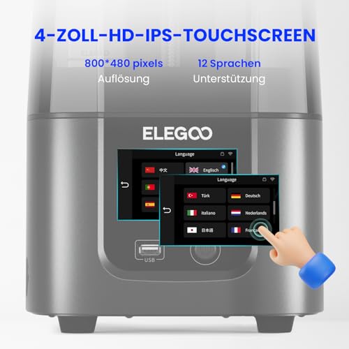 Die Benutzeroberfläche des MARS 4 Ultra wird durch einen 4-Zoll-HD-IPS-Touchscreen intuitiv gestaltet. Der Bildschirm bietet eine klare und einfache Navigation, was den Druckprozess für Benutzer aller Erfahrungsstufen erleichtert. Zudem stehen 12 verschiedene Sprachen zur Verfügung, was die Benutzerfreundlichkeit erhöhen kann.