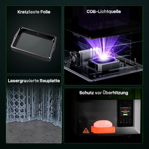 Der ELEGOO Mars 5 ist mit zahlreichen Sicherheitsfunktionen ausgestattet, darunter ein intelligenter mechanischer Sensor, der Druckanomalien wie unzureichendes Harz oder Überhitzung erkennt und daraufhin Warnungen ausspricht.