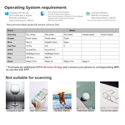 Kostengünstig: Der Creality Ferret-Scanner ist von hoher Qualität zu einem erschwinglichen Preis. Er ist die beste Wahl für 3D-Scanner und führt Sie auf eine magische und wunderbare Scan-Reise., Scannen im Dual-Modus: CR-Scan Ferret bietet zwei Modi mit großer Reichweite und hoher Präzision, die je nach spezifischen Scan-Anforderungen ausgewählt werden können, z. B. menschlicher Körper, Möbel, Autos und mittelgroße Statuen (größer als 50 x 50 x 50 mm)., Hohe Scan-Geschwindigkeit: Im Gegensatz zu anderen Scannern beträgt die Scan-Bildrate des Upgrade-Ferret-Scanners bis zu 30 FPT, was die Scan-Fluidität verbessert. Optimale Scan-Ergebnisse erfordern hochkonfigurierte Geräte, deren Rechenleistung die tatsächliche Geschwindigkeit beeinflusst., Vollfarb-Scannen: Die eingebaute hochauflösende Farbkamera spiegelt die reale Welt auf realistische Weise wider. Außerdem ist sie mit fortschrittlicher optischer Technologie ausgestattet, die auch bei hellem Sonnenlicht gut funktioniert., Kompaktes Design: Tragbarer Handscanner, einfach mit nur einer Hand zu halten, wiegt nur 105 Gramm und passt mühelos in eine Tasche oder einen Rucksack. Beginnen Sie mit dem Scannen und lassen Sie Ihrer Inspiration jederzeit und überall freien Lauf., Hinweis: Erwerben Sie zusätzliches WiFi6 Wireless Bridge-Zubehör, um den Scanner mit Mac und iOS kompatibel zu machen.