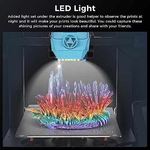 | Features | 【Klipper ermöglicht eine Druckgeschwindigkeit von bis zu 500mm/s】SV07 ist mit einem 480×800 hochauflösenden 5 Zoll Touchscreen ausgestattet, der Ihnen eine völlig andere Erfahrung als der Knopfbildschirm und der normale 4,3 Zoll Touchscreen auf dem Markt bietet. Die Klipper-Firmware ermöglicht den Hochgeschwindigkeitsdruck des SV07 mit bis zu 500mm/s. Wir empfehlen Ihnen, 250 mm/s für optimale Ergebnisse zu wählen. Klipper bietet auch eine Reihe von Funktionsoptionen, einschließlich der Höhentabelle und des Input Shapers, die Sie je nach Ihren spezifischen Bedürfnissen selbst zusammenstellen können., 【300℃ High Temp Printing】All-metal hotend setup kommt mit einer größeren Schmelzzone, die SV07 könnte bei 300℃ drucken. Ein extra großer Lüfter an der Rückseite des Extruders bietet SV07 dreifache Luftströme, um die Drucke schnell zu kühlen und eine gute Schichtung für bessere Ergebnisse zu erreichen. Er macht die hohe Geschwindigkeit und die hohe Temperatur möglich. Sie brauchen kein PTFE mehr auszutauschen oder die Firmware zu flashen, um problemlos mit verschiedenen Materialien wie ABS, Nylon, Kohlefaser, PC, PETG, Holz usw. zu drucken (für den Druck über 260℃ ist ein Gehäuse erforderlich)., 【Planeten-Doppelgetriebe-Direktantrieb】 Mit dem von Sovol selbst entwickelten Ganzmetall-Direktantriebsextruder, der mit einem doppelten Planetengetriebe ausgestattet ist, bietet der SV07 ein höheres Antriebsverhältnis und einen leichteren Motor für eine präzise Extrusion. Außerdem haben wir einen großen externen Drehknopf eingebaut, um die Zuführung zu erleichtern, so dass Sie sich auf Ihr Druckprojekt mit minimalen Unterbrechungen konzentrieren können., 【25-Punkt-Bettnivellierung】SV07 verwendet eine 25-Punkt-Autonivellierung mit einem induktiven Sensor, um Unebenheiten im beheizten Bett zu erkennen und auszugleichen. Diese präzise und intelligente Technologie ermöglicht es, eine fantastische erste Schicht zu erhalten. Hinweis: Wenn Sie beim Schneiden die Anfangsschichthöhe auf 0,3 mm einstellen, erzielen Sie optimale Ergebnisse., 【Doppelseitige schwarze PEI-Platte】Die flexible Platte des SV07 ist nicht nur ein magnetisches Druckbett, das eine ausgezeichnete Haftung bietet, sondern auch ein langlebiges Teil. Sie können die Drucke leicht ohne Werkzeug entfernen. Und das doppelseitige Design sorgt dafür, dass es SV07 für längere Zeit dienen wird. Sollten Sie Probleme mit der Haftung haben, empfehlen wir Ihnen, die PEI-Oberfläche vor dem nächsten Druck mit Alkohol abzuwischen., 【Praktischer, bequemer】SV07 verfügt über mehrere Optimierungen, einschließlich LEDs um die Düse, Werkzeugschublade und hochwertigen Gürtel. Zusätzliche LED-Leisten unter dem Extruder helfen, die Drucke in der Nacht zu beobachten und schöne Drucke Bilder zu erfassen, so dass Sie mit Ihren Freunden auf Social Media teilen könnten. Der hochfeste Riemen mit Anti-Rutsch-Design sorgt für eine stabile Übertragung. Außerdem können Sie mit der zusätzlichen Werkzeugschublade alle Ihre 3D-Druckwerkzeuge schnell verstauen., 【32-Bit Silent Mainboard & Power Supply】TMC2209 Driver hilft SV07, die Kühlwirkung zu verbessern. Es ist auch entworfen, um Anti-Interferenz und bietet SV07 stabile Kommunikation und sicheres Drucken. 350W Netzteil sorgt für zuverlässiges und stabiles Drucken. |