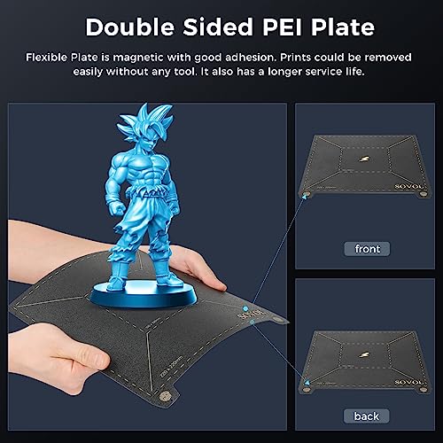 Der Sovol SV07 3D-Drucker ermöglicht Druckgeschwindigkeiten von bis zu 500mm/s und Temperaturen bis 300℃. Mit einem 5 Zoll Touchscreen, automatischer Nivellierung und flexibler PEI-Platte ist er ideal für deine kreativen Projekte.