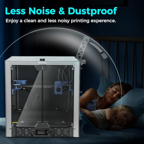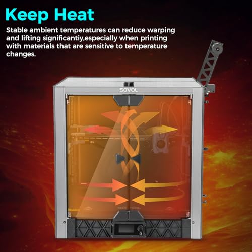 Features | Entwickelt für Sovol SV08! Sie können die Druckdatei „SV08 Top Extension Kit“ von der Sovol-Website für eine Z-Achsen-Druckgröße von 345 mm mit offenem Gehäuse herunterladen. Dieses Teil kann Ihnen auch dabei helfen, Wärme beim Drucken von PLA abzuleiten., Geräuschreduzierung: Das Gehäuse isoliert den Drucker von der Umgebung und reduziert effektiv den Lärm von Lüftern und Motoren, die mit voller Geschwindigkeit laufen., Wärme halten: Stabile Umgebungstemperaturen können Druckprobleme wie Verformungen und Abheben erheblich reduzieren, insbesondere beim Drucken mit Materialien, die empfindlich auf Temperaturschwankungen reagieren., Gerüche entfernen: Ausgestattet mit einem Staubschutz und einem Abluftventilator hilft es, Gerüche, die beim Drucken mit bestimmten Materialien (wie ABS, PETG, Nylon) entstehen können, daran zu hindern, in Ihr Zuhause oder Büro zu gelangen., Laufenden Druck schützen: Während der Drucker staubfrei bleibt, kann das Gehäuse auch laufenden Druck vor externen Störungen schützen und so die Stabilität der Druckumgebung gewährleisten. |