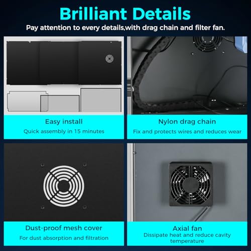 Das Sovol SV08 Enclosure ist eine exzellente Investition für jeden, der ernsthaft mit 3D-Druckerei arbeitet. Mit seiner Kombination aus Stabilität, Geräuschreduzierung und effektiven Temperaturmanagement stellt es sicher, dass deine Drucke nicht nur besser gelingen, sondern auch in einem angenehmeren Arbeitsumfeld stattfinden. Das ansprechende Design rundet das Gesamtpaket ab und macht das Gehäuse sowohl funktional als auch ästhetisch attraktiv.