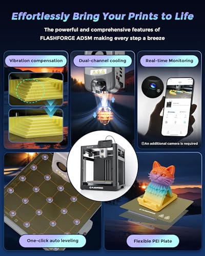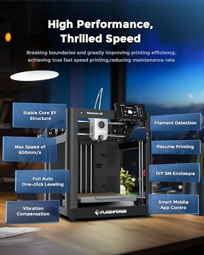 Erlebe mit dem FLASHFORGE Adventurer 5M 3D-Drucker unglaubliche Druckgeschwindigkeiten bis zu 600 mm/s. Mit automatischer Nivellierung und einfachem Einstieg bist du bereit für kreative Projekte in kürzester Zeit! Ideal für Anfänger und kreative Köpfe.