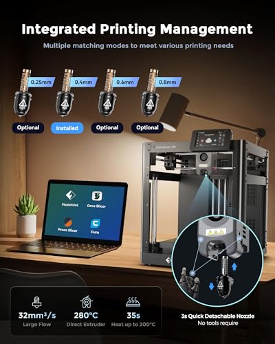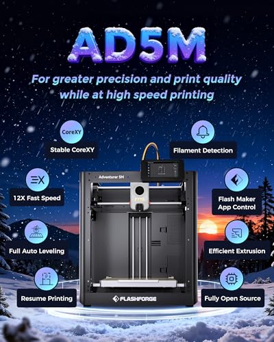 | Features | 【Erstaunliche Geschwindigkeit, Stabilität】Mit der leistungsstarken Klipper Firmware und der leichten Core XY Struktur kann FLASHFORGE Adventurer 5M beeindruckende Fahrgeschwindigkeit von 600mm/s und 20000mm/s² Beschleunigung realisieren. Es ermöglicht eine höhere Präzision und Hochgeschwindigkeitsdruck bei gleichzeitiger Aufrechterhaltung der Druckqualität. 220x220x220mm große Druckgröße von AD5M macht effiziente Raumnutzung und erhöht die Druckeffizienz erheblich, 【Leistungsstark und einfach】Drucken Sie direkt aus der Box innerhalb von 10mins. Adventurer 5M verfügt über ein-Klick automatische Nivellierung ohne Operation oder Aufmerksamkeit und gewährleistet jedes Mal perfekte Drucke ohne den Aufwand. FLASHFORGE 5M integriert Schlüsselfunktionen, wie Dual-Fan Düsen, Filamenterkennung, Wiederaufnahme des Drucks und Vibrationskompensation Funktion, um ein effizientes, bequemes und erfolgreiches Druckerlebnis zu gewährleisten, 【32mm³/s Heißes Ende mit großem Durchfluss】Max 280°C Direktextruder, Heizung auf 200°C nur in 35s, um sicherzustellen, dass das Filament während des Hochgeschwindigkeits- und Hochtemperaturdrucks vollständig geschmolzen wird.5M 3D Prtinter kann verschiedene Filamente wie PLA/ABS/PETG/TPU/PLA-CF/PETG-CF (PC/ASA benötigt geschlossenes Gehäuse).3s Schnellabnehmdüsen (0.25/0.4/0.6/0.8mm Optionen) und doppelseitige PEI-Plattform geben Ihnen die Freiheit, personalisierte Designs zu erstellen, 【Smart Moblie App Control】Mobile App "Flash Maker" unterstützt Remote-Echtzeitüberwachung des Drucks (PLS HINWEIS: AD5M Notwendigkeit, ein zusätzliches 5M Camera Kit hinzuzufügen), Einstellparameter, Empfang von Nachrichtenwarnungen und andere Funktionen. Unsere Abenteurer 5m Serie ermöglicht Benutzern, jederzeit und überall ein intelligentes Druckerlebnis zu haben. Und erleichtern Sie die Fernsteuerung mehrerer Drucker. Perfekt für Anfänger, Heimgebrauch und pädagogische Anwendungen, 【Farbe deine Fantasie】Erstellen Sie Ihr eigenes einzigartiges 5M Gehäuse mit endlosen Möglichkeiten, die Sie sich vorstellen können. Hinweis: Flashforge 3D-Drucker wird mit 12-monatiger Garantie und lebenslangem technischem Support geliefert. Bitte lesen Sie die Bedienungsanleitung vor Gebrauch sorgfältig durch, um Düsenverstopfungen und andere Probleme zu vermeiden, die durch unsachgemäße Bedienung verursacht werden! Wenn Sie ein Problem haben, kontaktieren Sie uns direkt für Hilfe! |